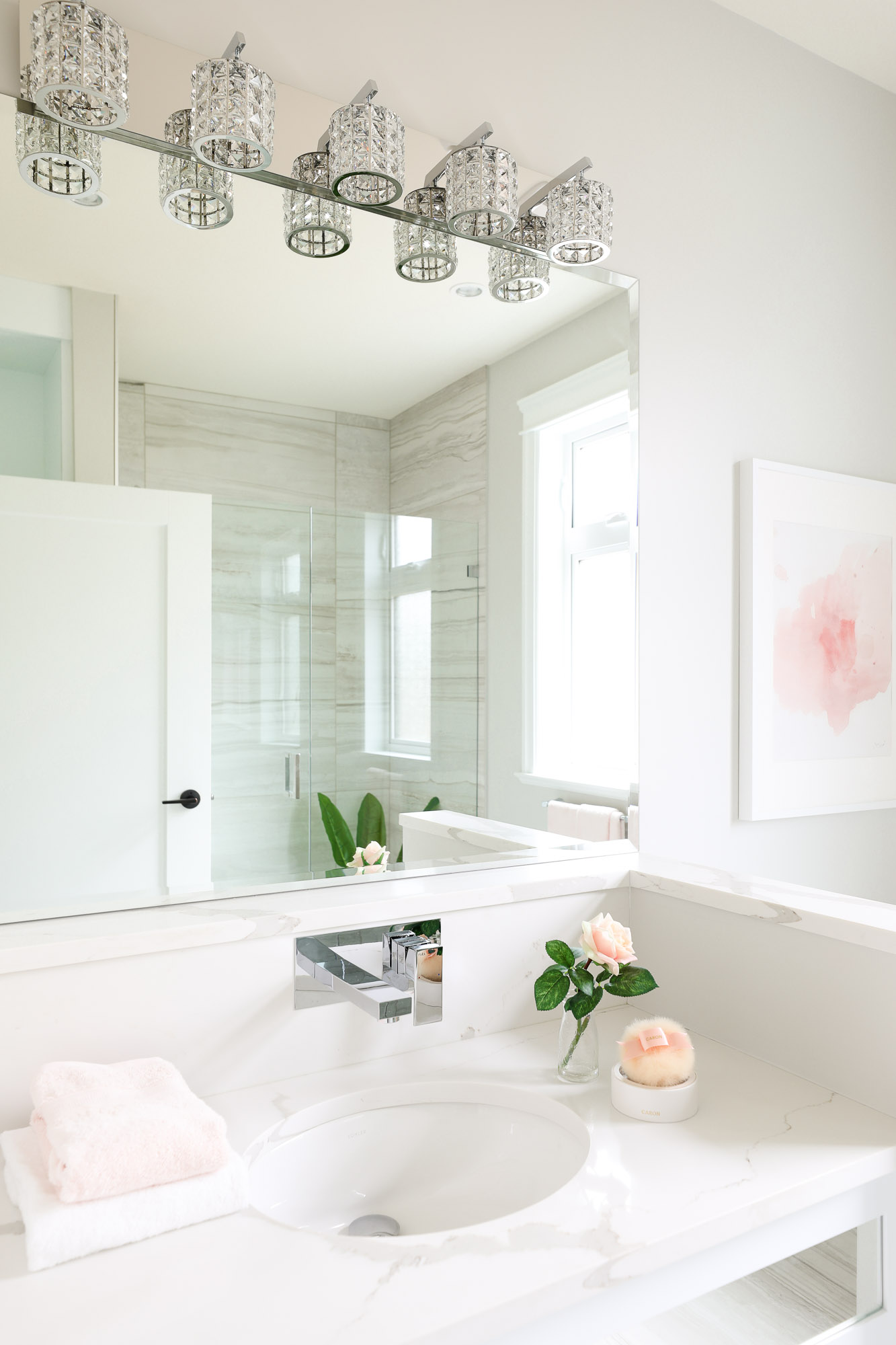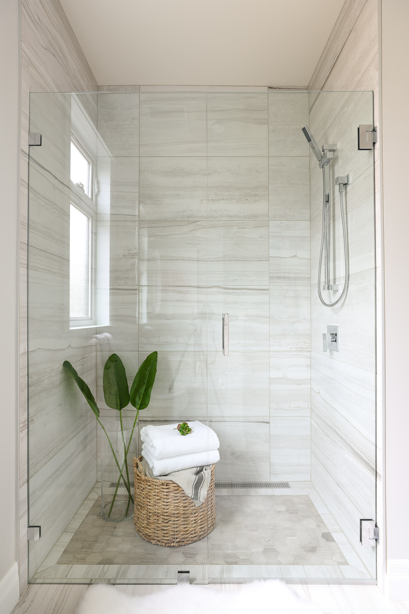 BATHROOMS WERE DESIGNED with multiple generations in mind. The principal en-suite bathroom benefits from a curbless zero-barrier walk in shower and a separate soaking bathtub.