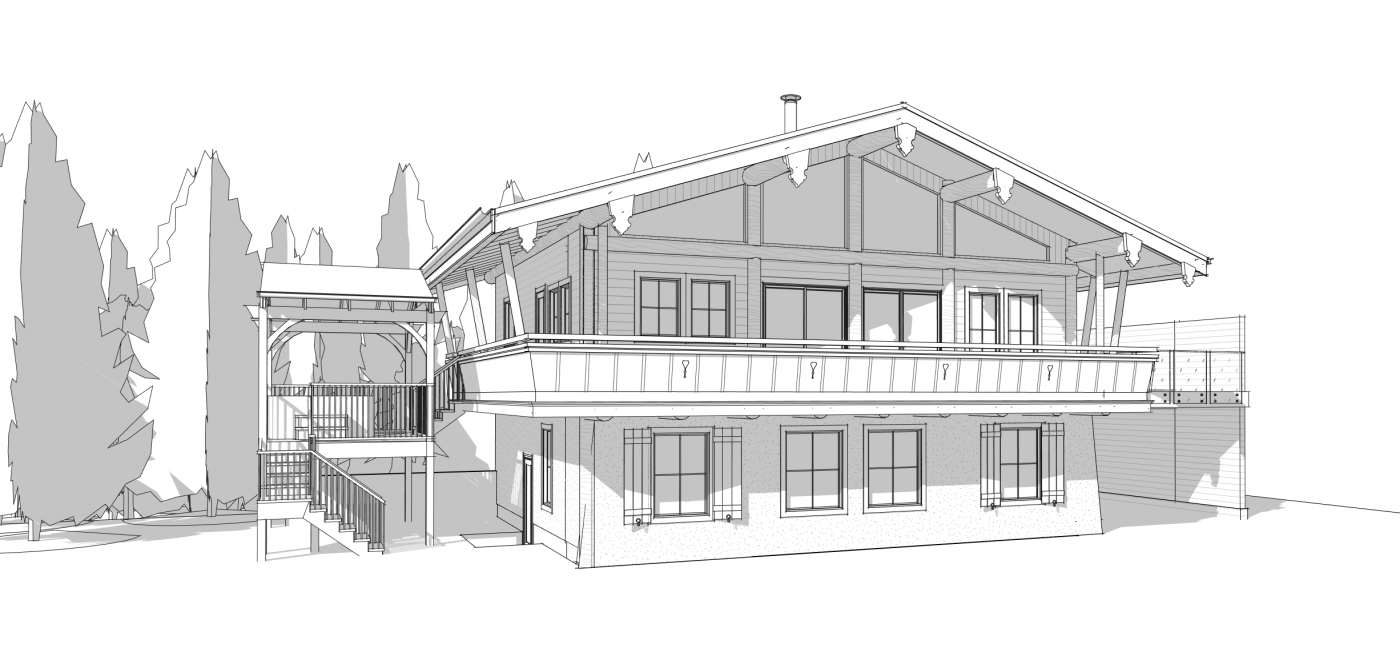 Simple but not easy. A full-scale interior renovation included peeling back the building to the timbers and excavating the foundation to improve the ground floor ceiling height without altering the building height outside. A brand new floor plan was created for four-season family vacationing. Carefully selected portions of solid wall replaced with energy-efficient glazing let in more light and mountain vistas, whilst keeping the charm & character in tact. Exterior decks were extended and refurbished, and a new hot-tub pavilion offers both privacy and jaw-dropping Whistler views.